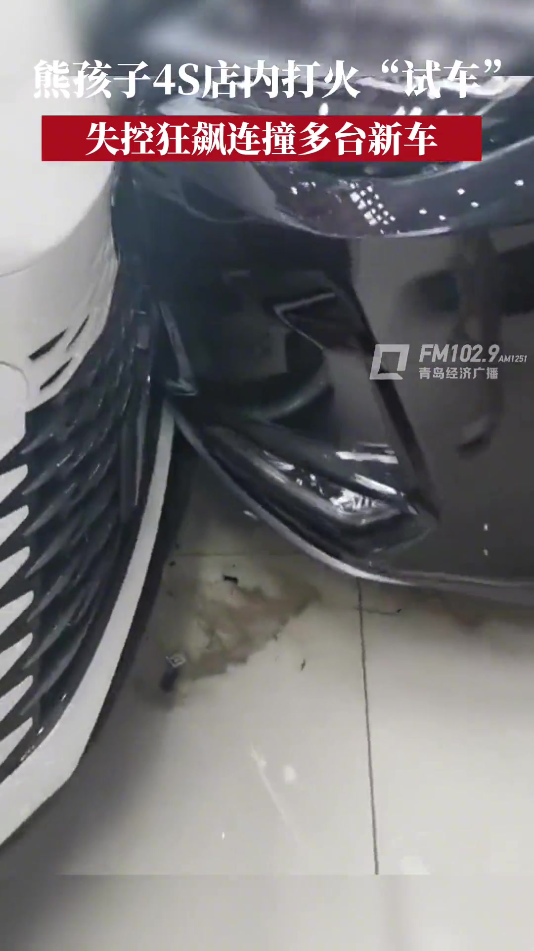 >熊孩子4S店内打火“试车”失控狂飙
