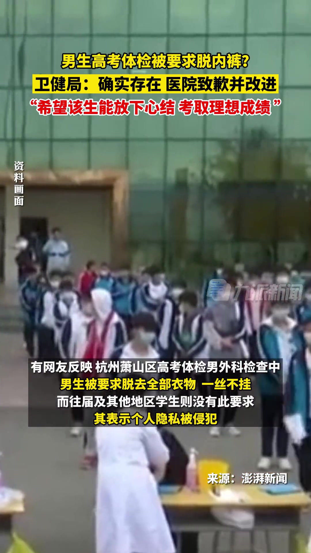 >男生高考体检被要求脱内裤 ,被质疑后医院致歉并改进!