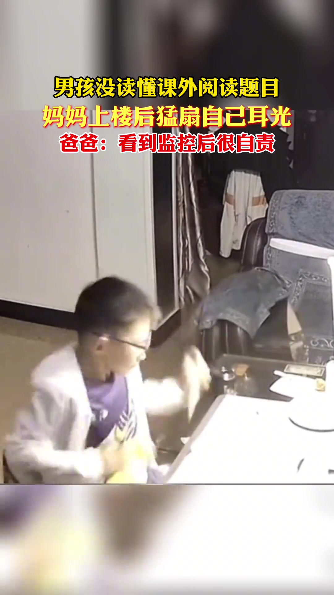 男孩没读懂课外阅读题 妈妈离开后猛扇自己耳光