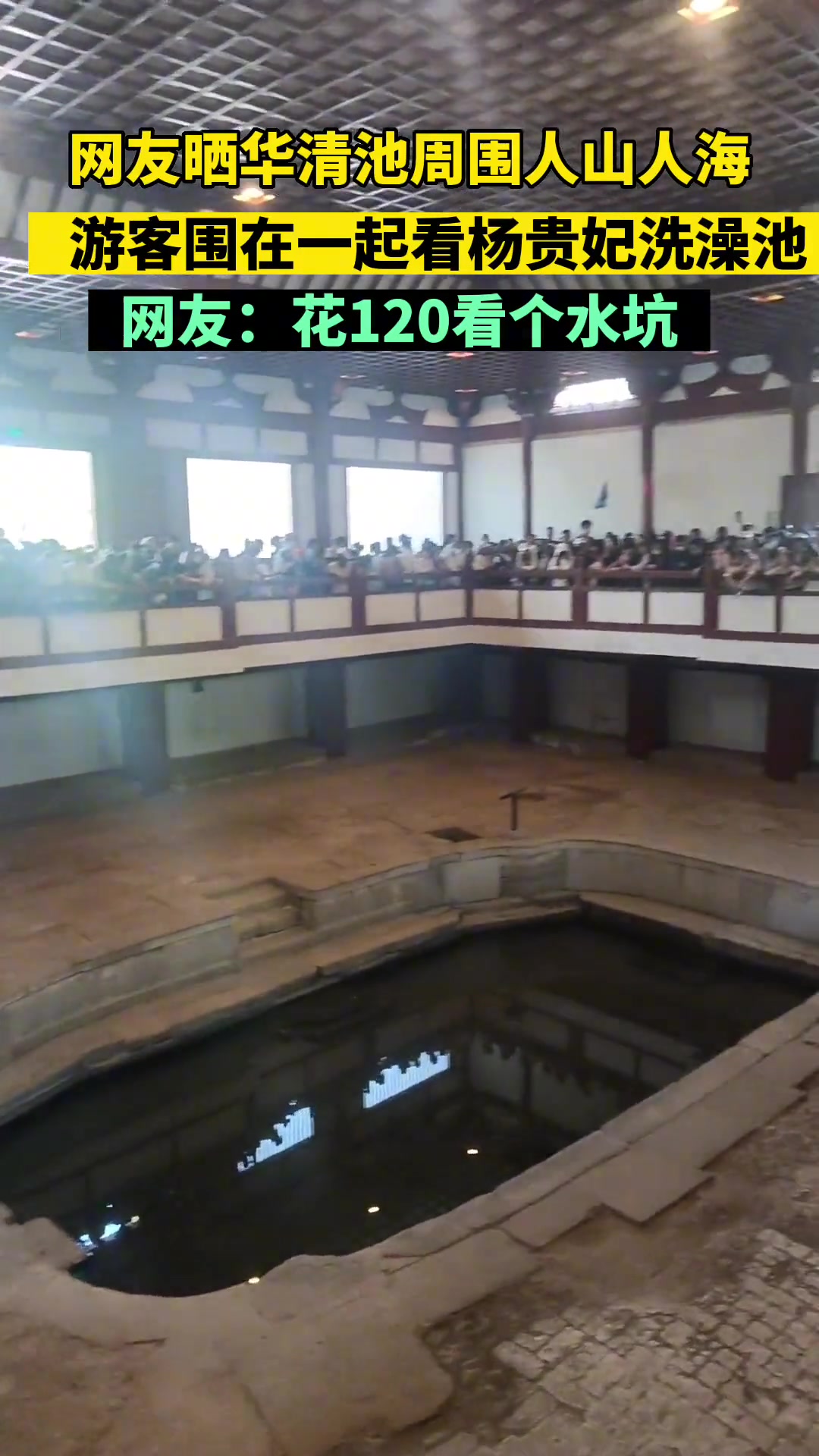 >网友晒华清池周围人山人海,游客围一起看杨贵妃洗澡池