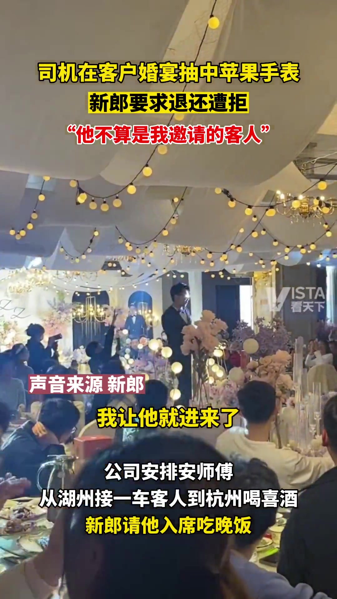 >司机在婚宴抽中苹果手表,新郎要求退还遭拒:司机不算邀请的客人