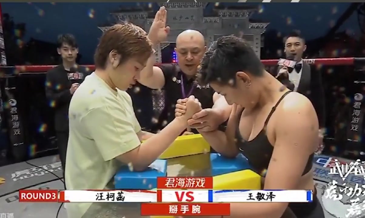 >好刺激呀!两位小姐姐激烈的掰手腕比赛