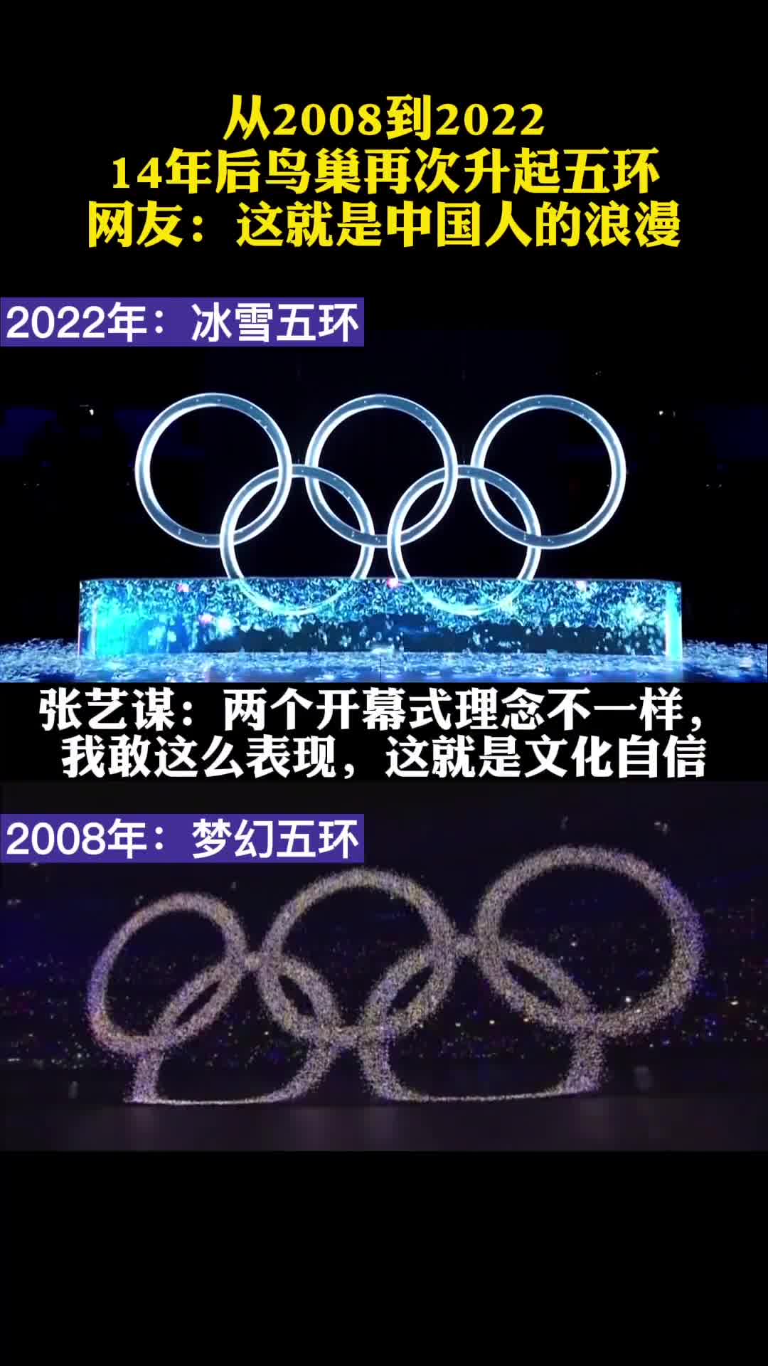 >这就是文化自信!从2008到2022,奥运五环再次在鸟巢升起