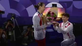 [咪咕视频] 你小子溜啊!赛后刘雨辰现场向黄雅琼求婚成功