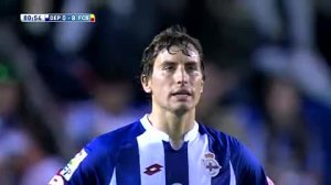 上半场开始后,巴萨占据了场上的优势。第6分钟,伊涅斯塔一脚直塞,苏亚雷斯禁区内的射门偏出了立柱。第9分钟,里埃拉外围的远射偏出了球门。第10分钟,苏亚雷斯禁区内回做,梅西跟进的推射被门将扑出。第10分钟,巴萨的角球机会,拉基蒂奇主罚传到禁区内,苏亚雷斯门前的垫射得手,拉科鲁尼亚0-1巴塞罗那!第13分钟,阿尔维斯的长传球被门将直接没收。第17分钟,拉科队员长传到禁区内,博格斯前插的垫射被布拉沃没收。第18分钟,博格斯晃开布拉沃后的射门被巴尔特拉封堵,里埃拉的补射也高出了球门。第22分钟,伊涅斯塔斜传到禁区内,苏亚雷斯的倒勾射门打偏了。第23分钟,伊涅斯塔直传,梅西不停球的一脚直塞,苏亚雷斯前插的推射破网,拉科鲁尼亚0-2巴塞罗那!