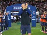 本场比赛,巴黎身着主场蓝色球衣。开场第10分钟比赛暂停,王子公园向10号伊布致敬。第16分钟,伊布率先帮助巴黎取得领先!他在门前接到迪马利亚的左路传中,用胸部将皮球撞进球门!巴黎1-0南特!