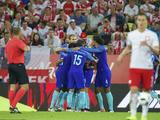 波兰出场阵容:1-什琴斯尼;20-皮什切克,15-格利克,2-帕兹丹,3-耶德泽齐克,16-布拉什奇克夫斯基,5-马琴斯基,19-杰林斯基,11-格罗斯基,7-米利克,9-莱万多夫斯基;