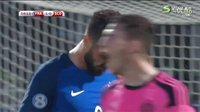 上半场开始后,两队进入状态都比较快。第1分钟,马图伊迪突破到禁区内的打门被防守球员封堵出了底线。第5分钟,法国的任意球机会,帕耶主罚传到禁区内,吉鲁抢点的打门被马绍尔扑出。第6分钟,里奇的左路传中被洛里没收。第7分钟,萨尼亚右路的低平球传中,吉鲁禁区内跟进的巧射得手,法国1-0苏格兰!第12分钟,帕耶左路的传中被防守球员控制。第14分钟,埃弗拉的传中直接出了边线。第16分钟,科曼内切后的打门被马绍尔没收。第20分钟,苏格兰的任意球机会被博格巴头球解围。第23分钟,博格巴的长传被马绍尔没收。