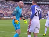 上半场结束,凭借邓普西的头球破门,美国1-0领先厄瓜多尔。