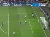 第25分钟,施魏因斯泰格外围的打门被洛里托出了底线。第26分钟,德国的角球机会被洛里没收。第30分钟,博阿滕的挑传被防守球员头球解围。第30分钟,基米希内切后的打门被防守球员封堵。第34分钟,厄齐尔右路的斜向传中被洛里没收。第36分钟,法国的任意球机会,博格巴主罚的射门被诺伊尔控制。第38分钟,穆勒外围的远射被洛里没收。第39分钟,赫克托的左路传中被萨尼亚挡出了底线。第40分钟,埃弗拉直塞,格列兹曼禁区内小角度的抽射打在了边网上。第41分钟,法国的反击机会,吉鲁禁区内的打门被赫韦德斯封堵。第45分钟,施魏因斯泰格禁区内手球犯规,裁判判罚了点球,格列兹曼一蹴而就,法国1-0德国!
