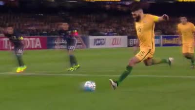 第87分钟,槙野智章手球犯规吃到黄牌。1分钟后,澳大利亚开出右路定位球,禁区里中路的斯皮拉诺维奇头球稍稍顶高。
