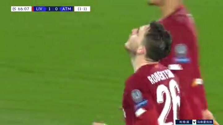 [击中横梁] 萨拉赫射门被挡 罗伯逊门前必进球顶中横梁