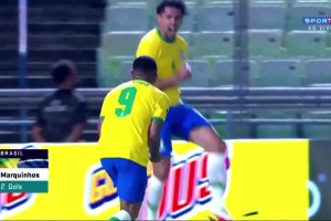 [进球视频] 巴西扳平比分!马尔基尼奥斯头球破门