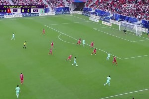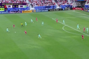 [射门中梁] 国足反击被断 对手反击马图克内切打中横梁