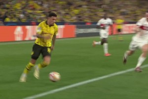 [凌空打高] 错失机会!桑乔边路过人下底传中喂饼!菲尔克鲁格凌空打门高出!