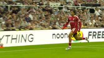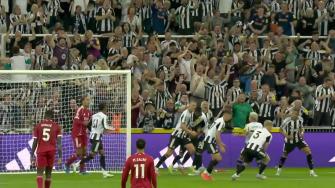 [进球视频]利物浦连丢两球!纽卡后场定位球吊向禁区,奥苏拉破门