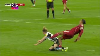 [红牌罚下]废人动作!戈登身后凶狠铲倒范迪克,裁判将其直红罚下