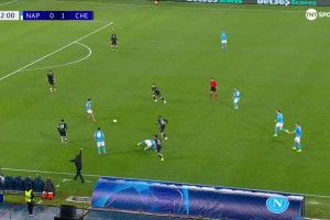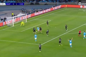 [进球视频] 那不勒斯半场2-1反超切尔西!奥利维拉助攻,霍伊伦抢点推射破门