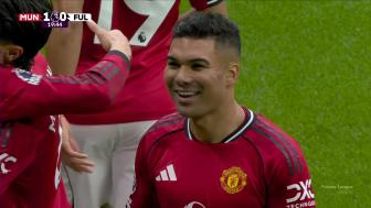 [进球视频]卡塞米罗助攻!库尼亚小角度劲射破门,曼联2-0领先富勒姆