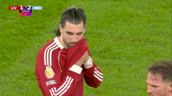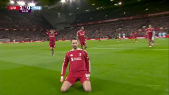 [进球视频] 飞火流星!索博斯洛伊炸裂任意球世界波破门!利物浦1-0领先曼城