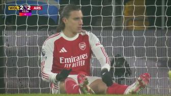 [咪咕全场集锦]多赛一场5分领跑!阿森纳2-2遭狼队补时绝平 萨卡打破15场进球荒