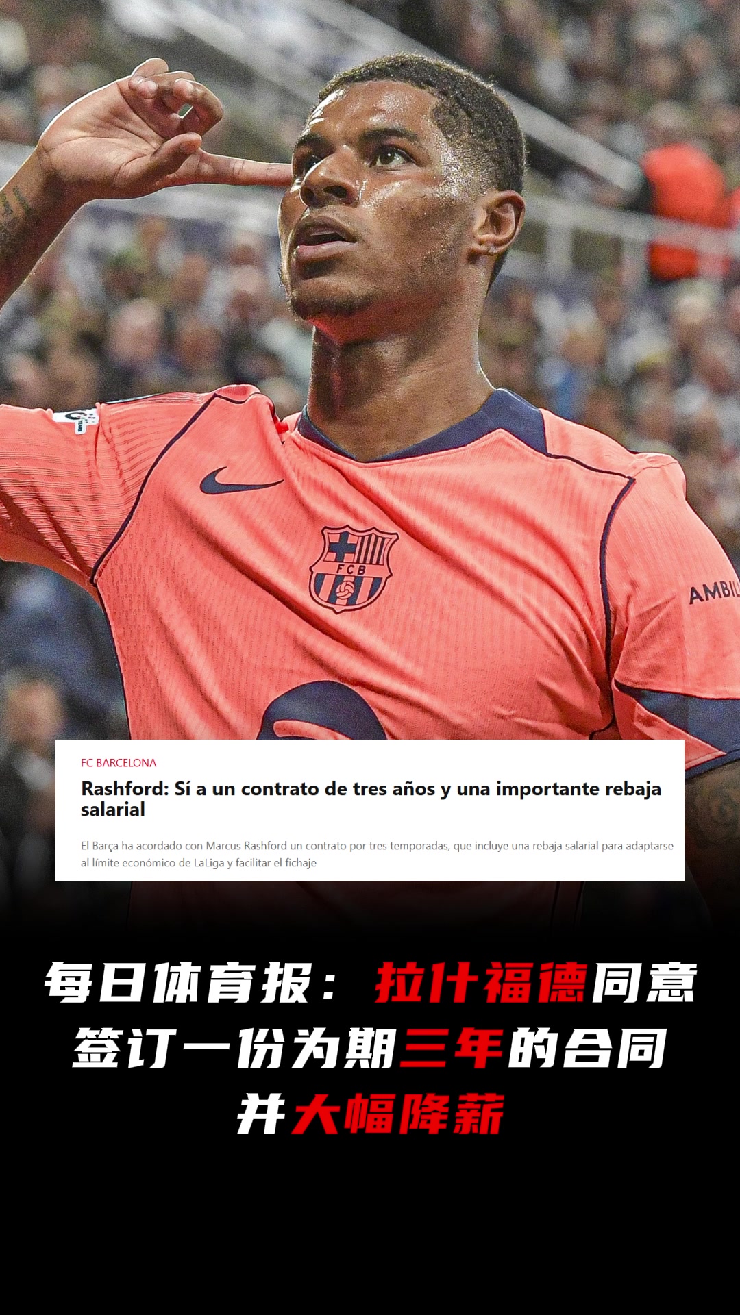 真爱!每体:拉什福德同意和巴萨签一份三年合同,并大幅降薪