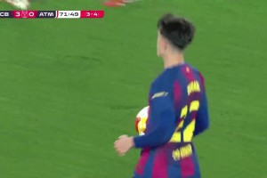 [进球视频]再扳一球!佩德里造点,拉菲尼亚点射破门仍2-4落后马竞