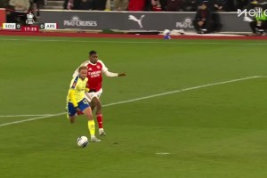 [进球视频] 枪手1-2再次落后圣徒!枪手左路被打穿!费洛斯助攻查尔斯破门!