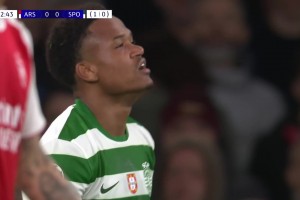 [劲射偏出] 吓人!葡体最后一攻险进球,若昂-西蒙斯劲射稍稍偏出!